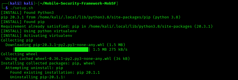 ./setup.shThis command will install all the required dependencies to run Mobile Security Framework, as we can see in the following screenshot.